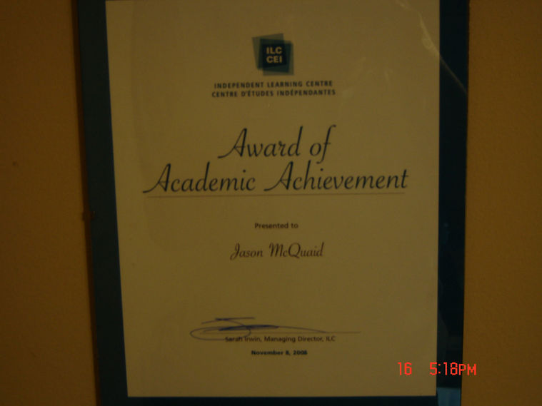 Awarded in 2008, upon my completion of high school.